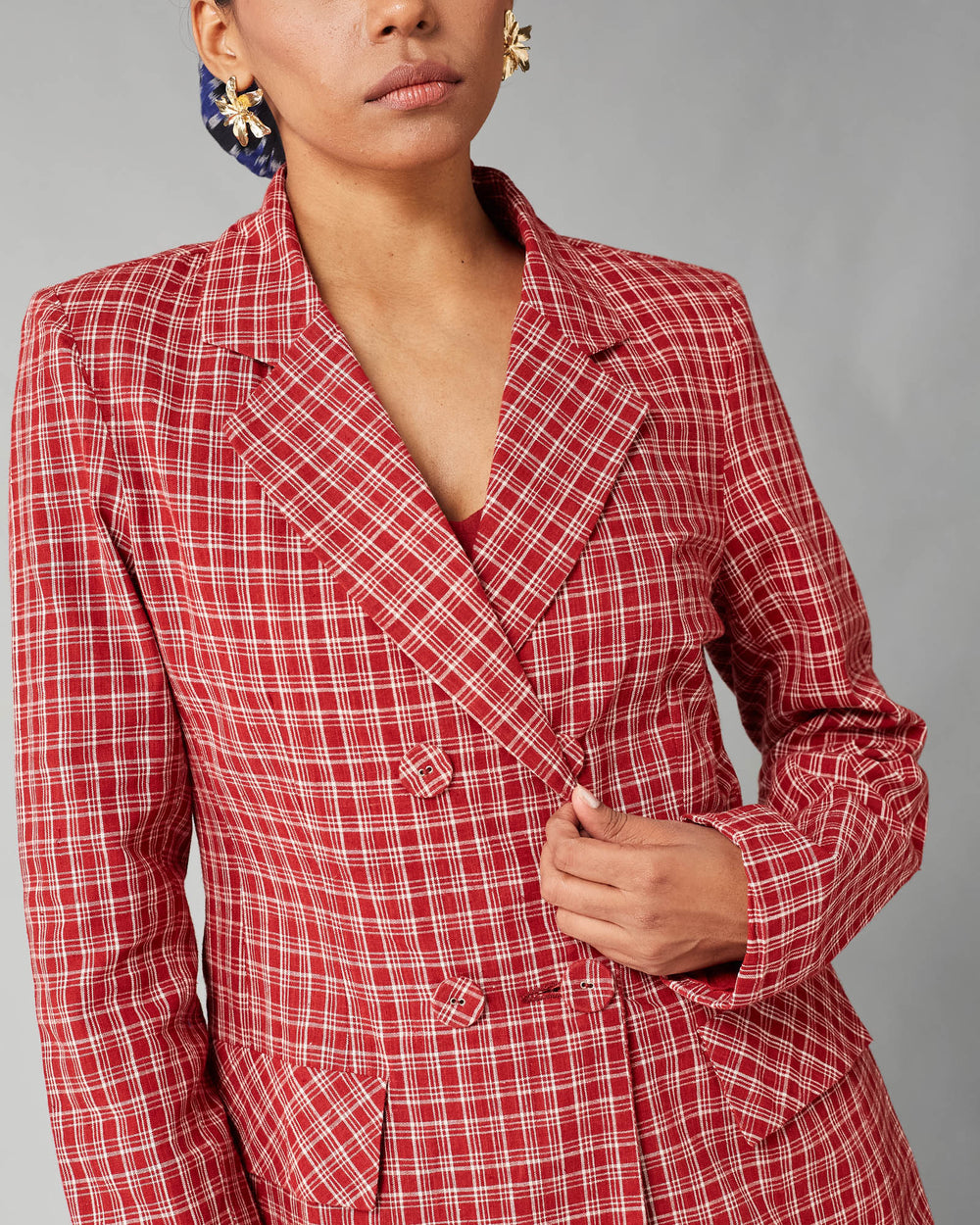 Power meets versatility in the Suri Coord Set—a must-have for the modern woman who loves to make a statement.This three-piece ensemble, crafted from luxurious handwoven fabric, seamlessly blends elegance with functionality. The structured blazer, featuring deep pockets, adds a polished edge, while the tailored trousers, also with functional pockets, offer both style and practicality. The sleek inner top completes the look, making it perfect for work meetings, brunches, or an effortless day-to-night transition. Wear it as a striking co-ord or mix and match the pieces—this set is your ultimate wardrobe investment in timeless fashion and sustainable luxury.