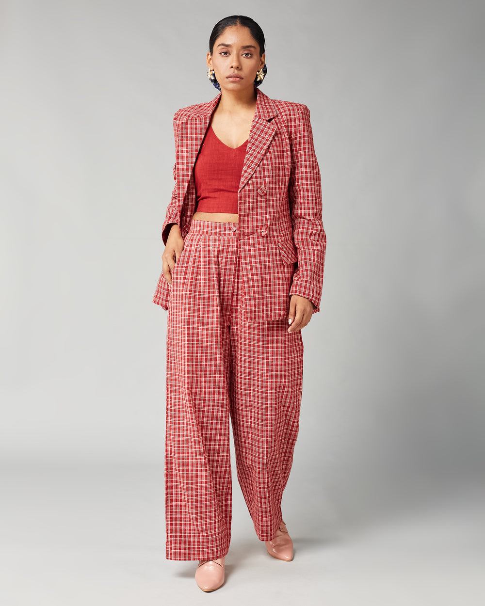 Bold, versatile, and effortlessly chic—the Suri Trouser is a statement piece that belongs in your wardrobe. Crafted from handwoven fabric, its tailored fit and eye-catching checkered pattern bring the perfect balance of structure and playfulness. Designed for both style and practicality, it features functional pockets to keep your essentials close. Whether paired with a crisp shirt for a power look or a relaxed tee for weekend ease, this trouser adapts to your every mood. Elevate your everyday style with a piece that’s as bold and dynamic as you are!